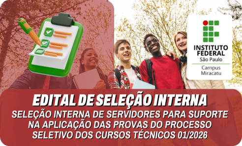Edital para seleção interna para composição de cadastro reserva de servidores(as) ativos(as) e efetivos(as) que desejem atuar durante a aplicação das provas do Processo Seletivo dos Cursos Técnicos 2026/1